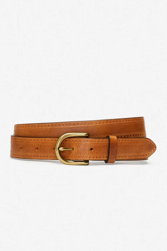 Plain Leather Belts Too Boring for You? Check out Our Embossed Leather Belt in Mid Brown. Features a Nickel Buckle and Infinity Embossment. Free Shipping!