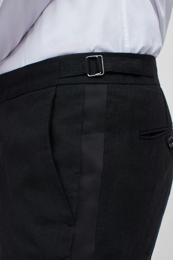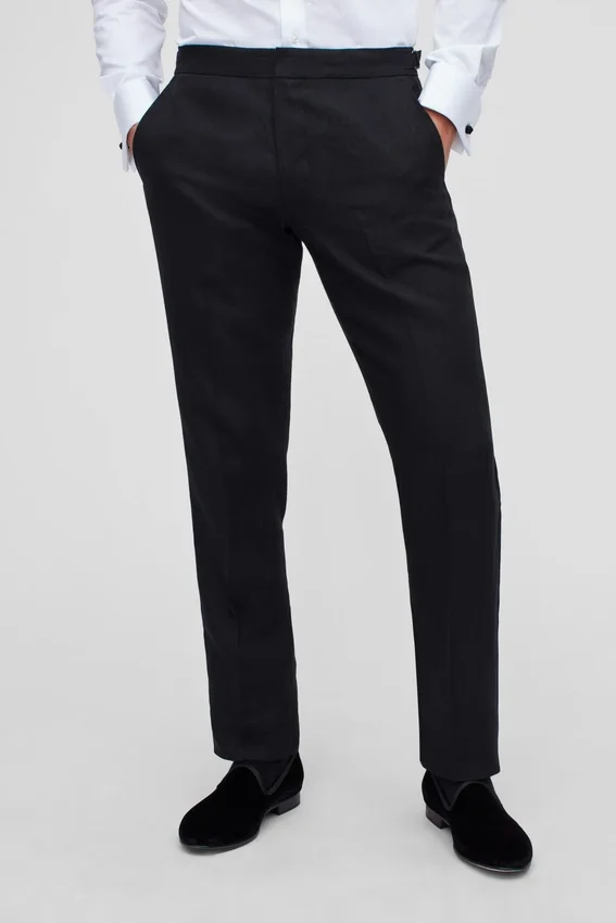 Model is 6’2″ with a 32″ Waist, and is Wearing a 32″ Suit Pants in Slim Fit. Suit Pants Come Un-Hemmed with a 37″ Inseam.