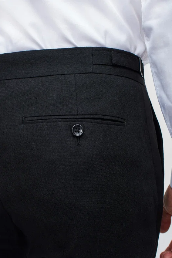 Classic Hook and Bar Closure | Buckles at Waistband | Button-Through Back Pockets | Interior Buttons for Suspenders