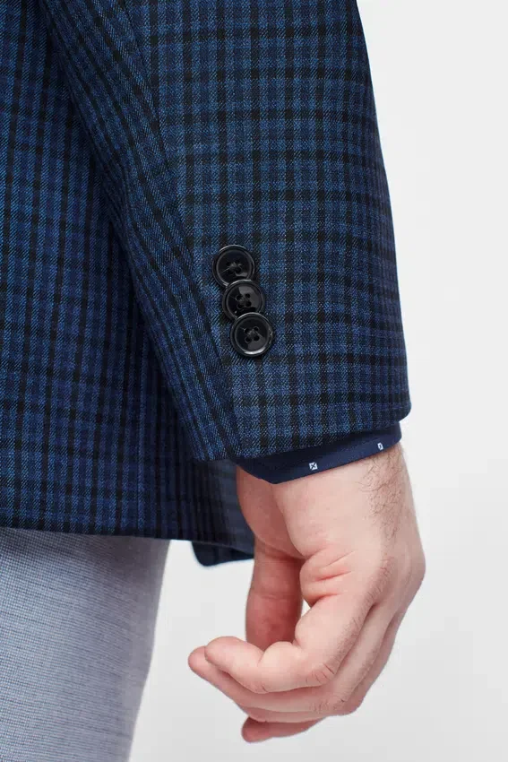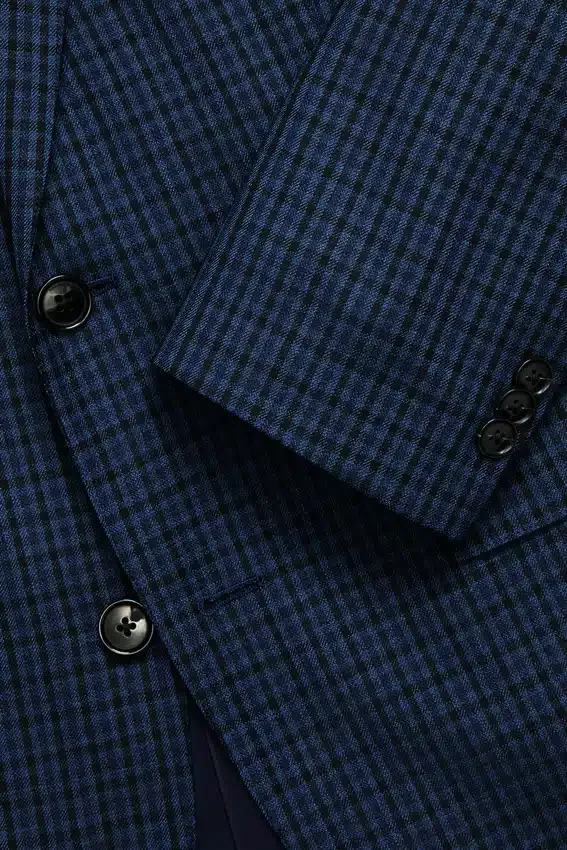 Wrinkle Resistant | Stain and Liquid Repellent | Notch Lapel | Full Lined | Flap Pockets | 2 Button Single Breasted | Non Functional Buttons at Cuff | Double Vent | Light Construction | Interior Welt Pockets | Interior Hidden Zip Pockets at Facing