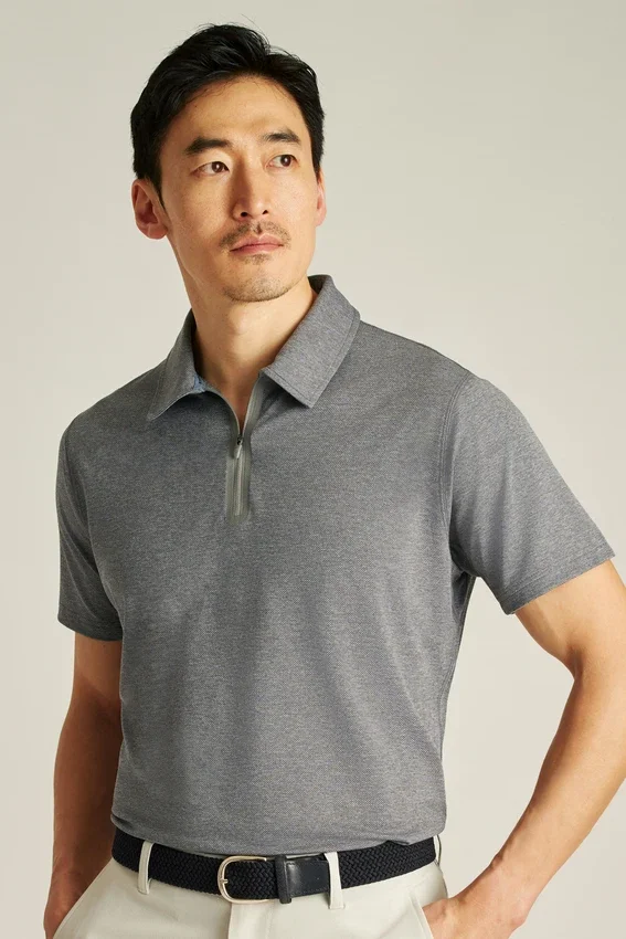 The Perfect Golf Polo for Comfort and Mobility on and off the Course. Made from Mesh Knit Fabric with an Adjustable Zip Closure, a Must-Have for Any Golfer.