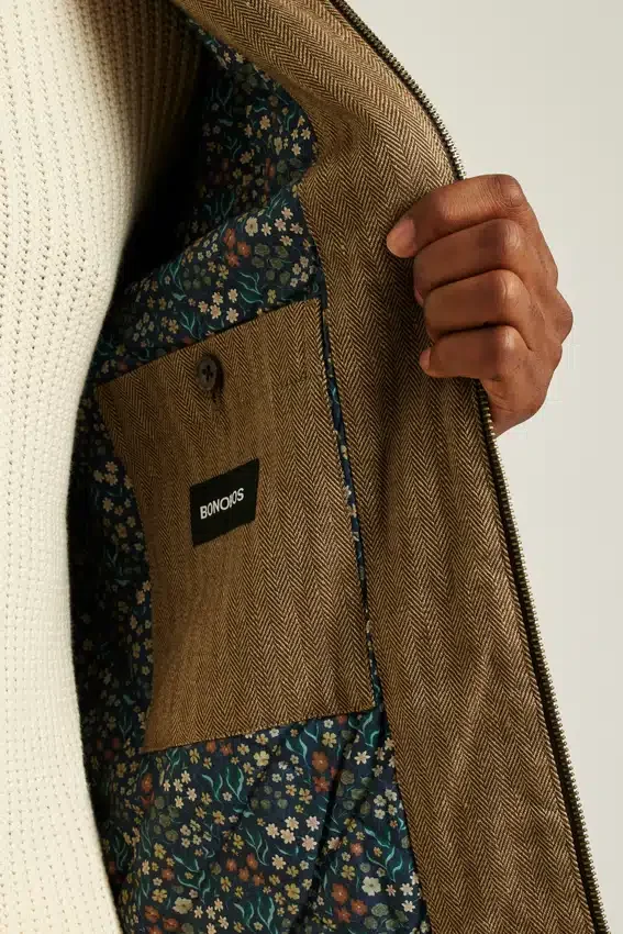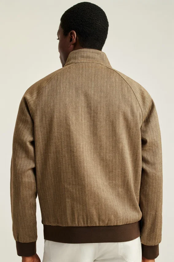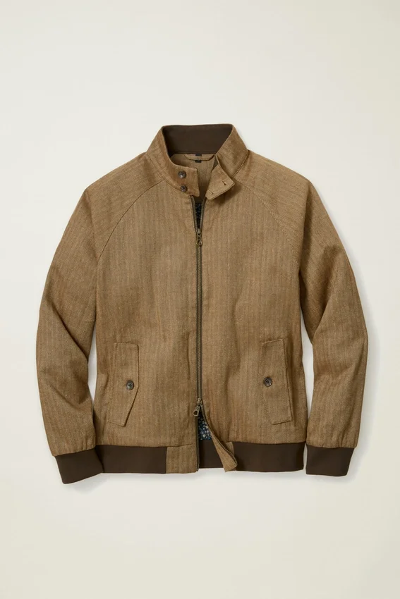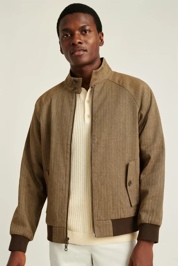 Tough on the Outside, Gentle on the Inside. Like the Hollywood Icons Who Wore It. Shop the Linen Harrington Jacket in Light Brown Herringbone.