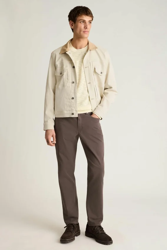 Corduroy Collar | Double Chest Pockets | On-Seam Waist Pockets | Interior Pockets | Central-Front Pleats | Back Hem Tabs | Double Needle Topstitching