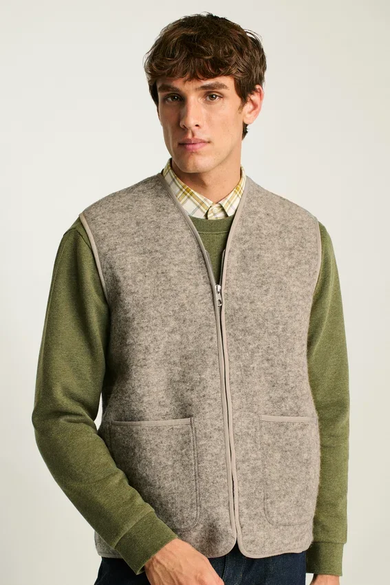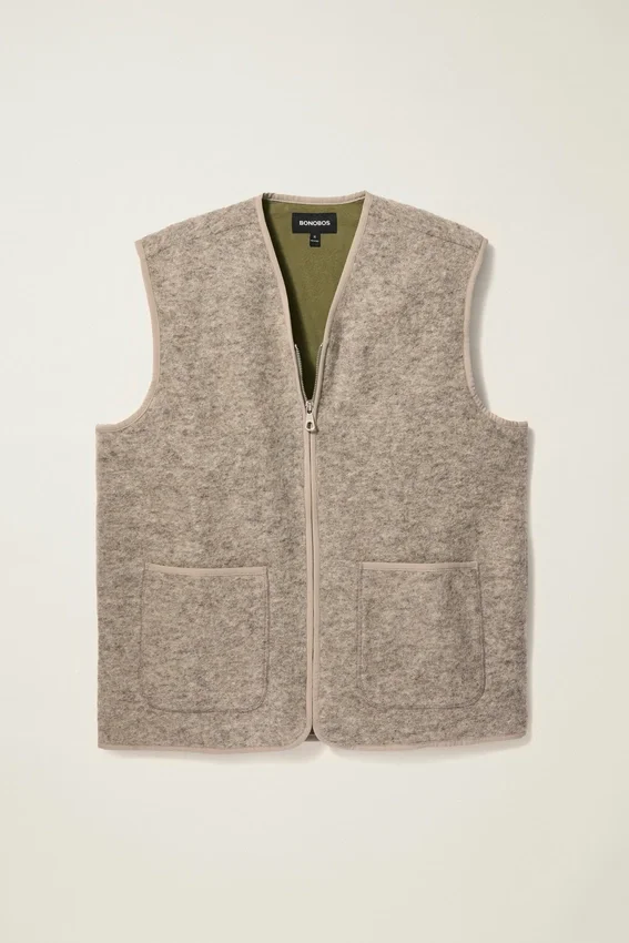 High-Pile Undyed Italian Fleece | Color is Natural, Eliminating the Dyeing Process | Fully Lined in Soft Cotton | Funnel Neck with Snap Closure | Zipper Welt Pockets