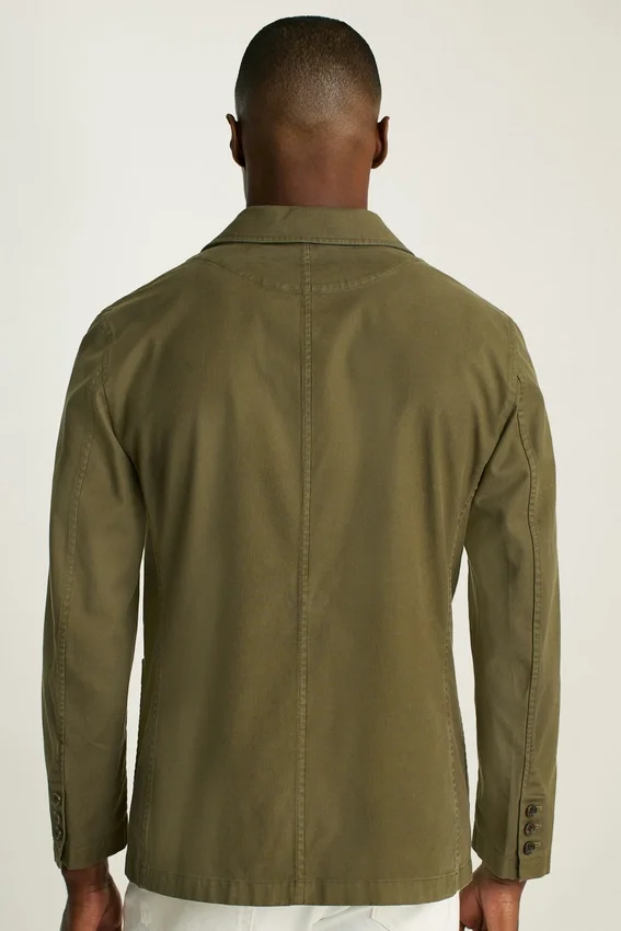 Notch Lapel | Three-Roll-Two-Button Stance | Completely Unlined and Unconstructed | Patch Pockets at Waist | Interior Pocket | Functional Cuff Buttons | Interior Locker Loop
