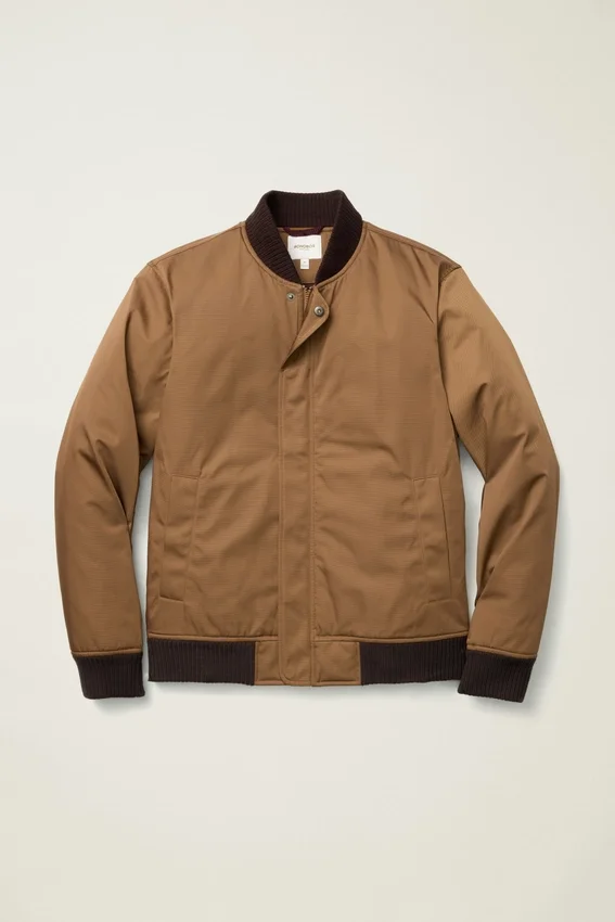 The Filled Boulevard Bomber by Bonobos is a Rain-Resistant Layer with Light Insulation. A Men’s Insulated Bomber Jacket Designed for Comfort, Warmth, and Multi-Season Wear.