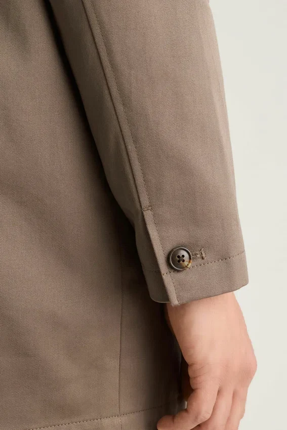 Water Resistant Italian Fabric | Button Front Placket | Welt Pockets | Functional Cuffs | Partially Lined Interior | Interior Pockets | Back Vent