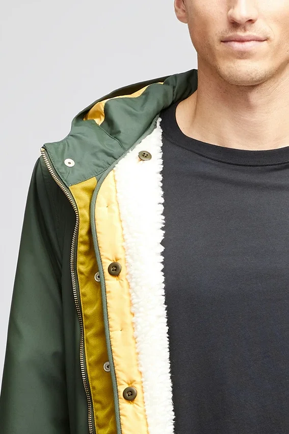 Lightweight Parka Jacket: Fully Seam Taped Interior | Interior Drawcord at Waist | Flap Pockets with Snap & Welt Opening —- Removable Liner Jacket: Lightweight Fabric | Body Lined with Sherpa | Sleeves Are Not Lined Sherpa | Interior Patch Pockets | Exterior Single Welt Hand Pockets with Snap Closure | Rib Sleeve Cuff