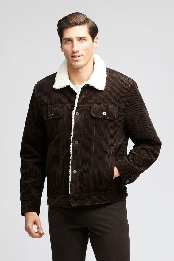 A Trucker Design Jacket with Corduroy Texture and Warm, Soft Lining. This is the Perfect Jacket for Casual Winter Outfits. Free Shipping.