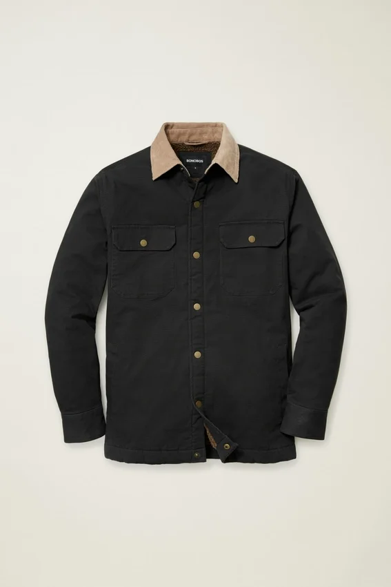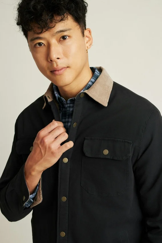 Chest Pockets | Single Welt Hand Pockets | Interior Chest Pocket | Snap Closure | Cord Detail at Collar and Inner Cuff | Teddy Fleece Lined Interior | Stretch Canvas Exterior