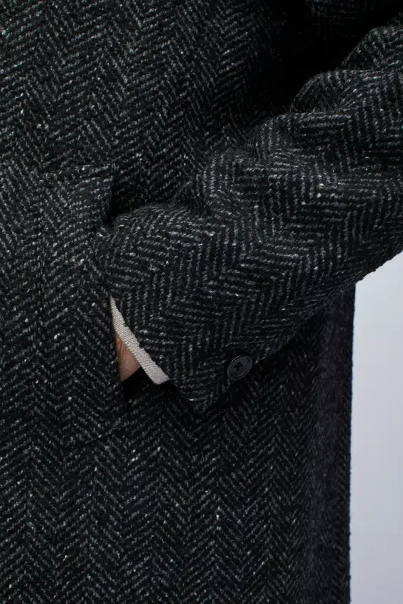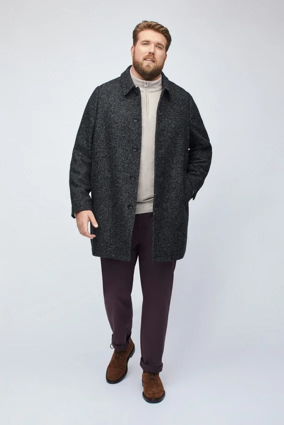 Classic Car Coat with Welt Hand Pockets. Half Lined. Button at Sleeve Cuff.