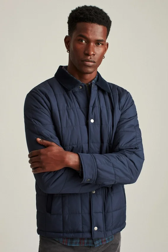 The Quilted Barn Jacket is Designed for Extra Warmth with Water-Resistant Material and Features Corduroy Detailing for Extra Style.