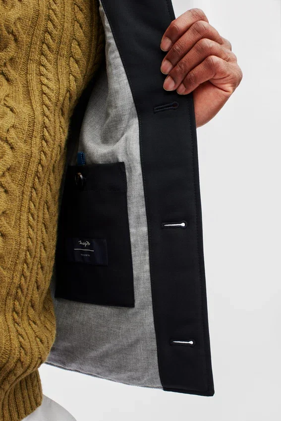 Italian Stretch Wool | Quilted and Filled for Warmth | Button-Front Closure | Fully Lined | Interior Pocket | Waist and Chest Pockets