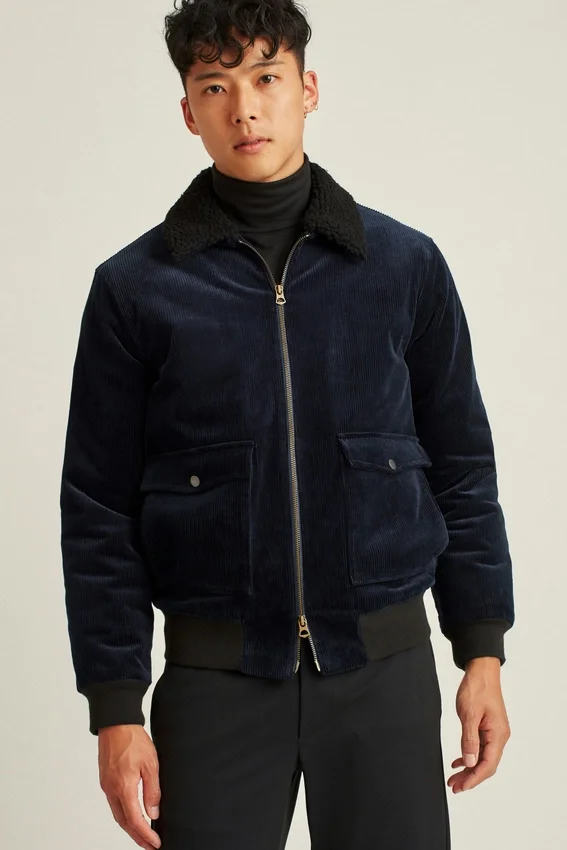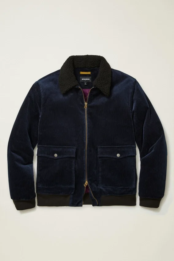 A Structured, Handsome Bomber with a Sherpa Collar and Quilted Interior for Extra Warmth.