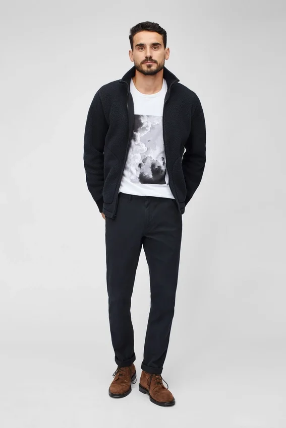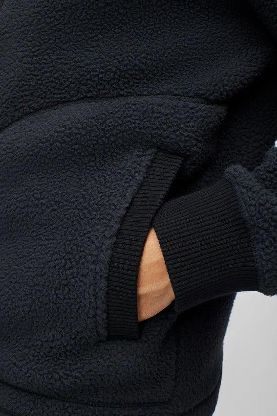 Rib Interior of Collar & Sleeve Cuff | Open Hem | Flatlock Seaming on Entire Body for Comfort | Zipper at Center Front | Single Welt Hand Pockets Using Rib | Soft Pocketing to Keep Hands Warm | Unlined