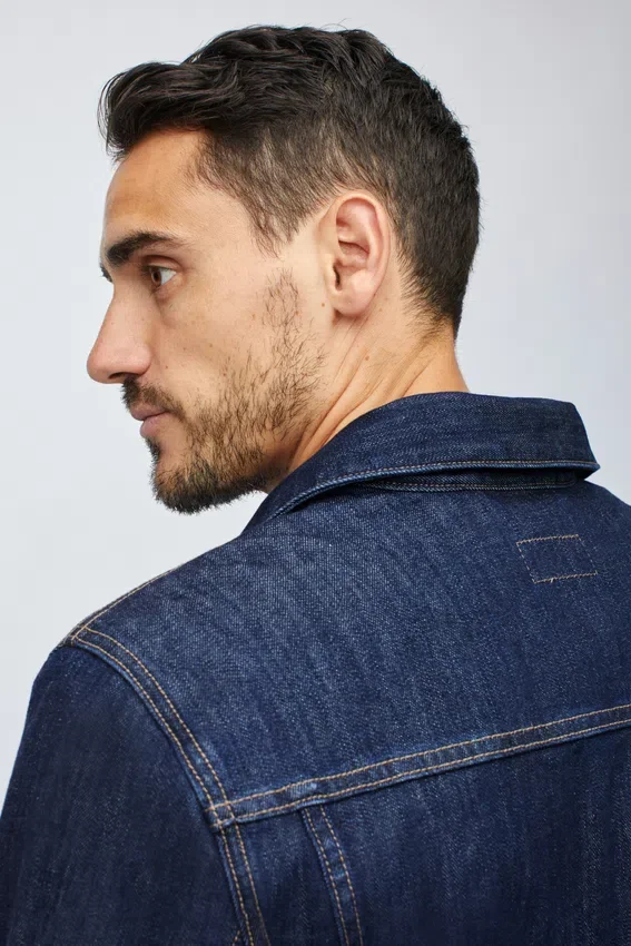 Model is 6’2″ with a 40″ Chest, and is Wearing a M. Fit Intent: This Denim Jacket is Designed for a Slim, Yet Comfortable Fit. Size Down if You Prefer a Slimmer Fit.