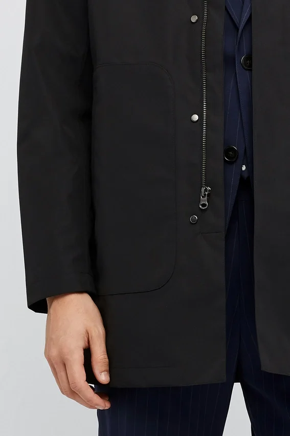 Hidden Zip & Snap Front | Waterproof Fabric | Seam Sealed | Top Applied Hand Pockets with Single Welt | Mesh Half Lined Interior | Fully Seam Sealed | Snaps at Sleeve Cuff