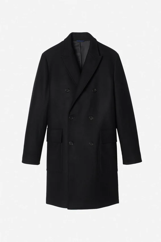 Water Repellent Wool | Six-Button Double Breasted | Peak Lapel | Fully Lined Body and Sleeves | Patch Pockets with Flap at Front | Single Back Vent | Interior Welt Pockets | Real Horn Buttons | Functional Buttons at Sleeve Cuff | Locker Loop at Interior