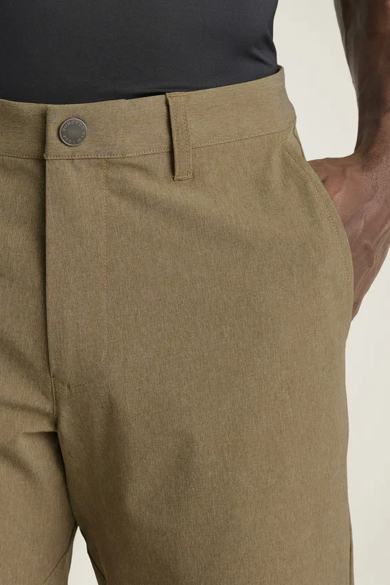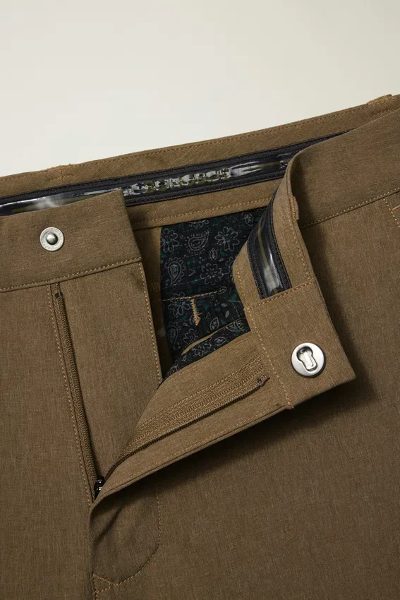 Stretch Waistband | Shirt-Gripping Elastic at Interior Waistband | Slide Snap Closure | Secure Zip Back Pocket | Added Gusset for Comfort & Movement | Wicking | Upf