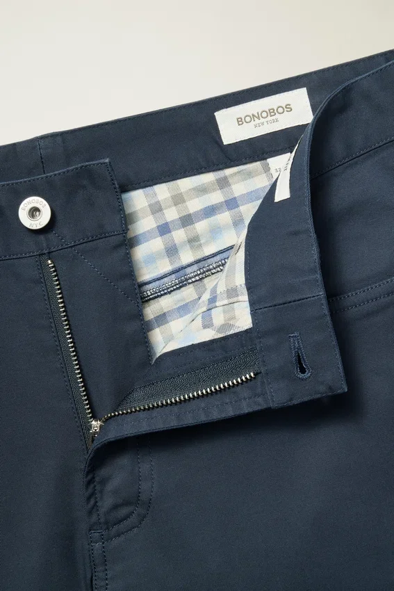 Solid Shell Fabric with Holiday Inspired Yarn Dyed Plaid Lining | Branded Metal Shank | Zip Fly with Button Closure | Plaid Pocketing