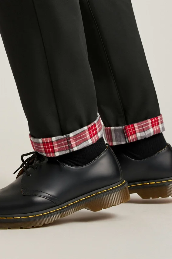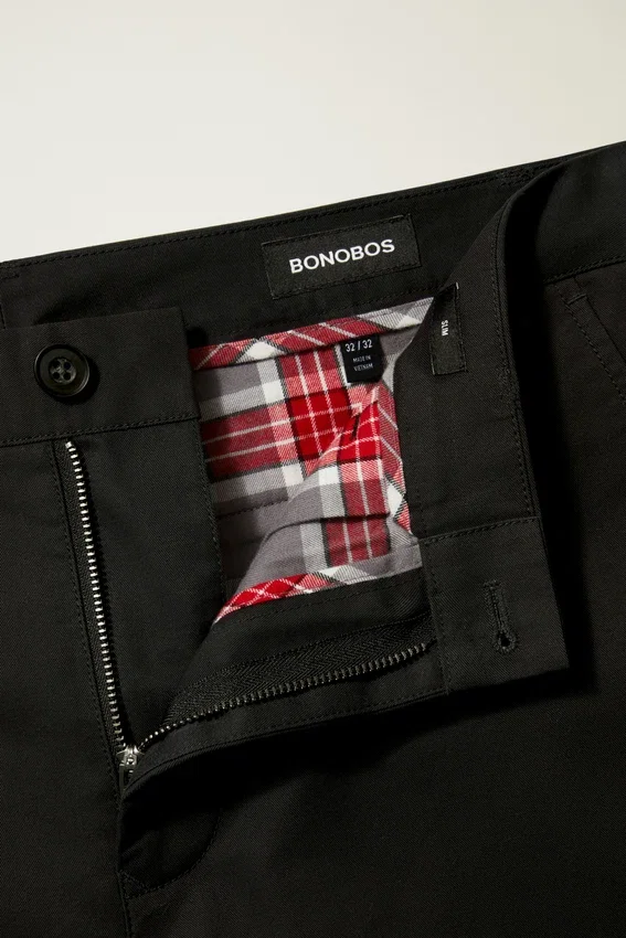 Solid Shell Fabric with Holiday Inspired Yarn Dyed Plaid Lining | Faux Horn Buttons | Zip Fly with Button Closure | Plaid Pocketing