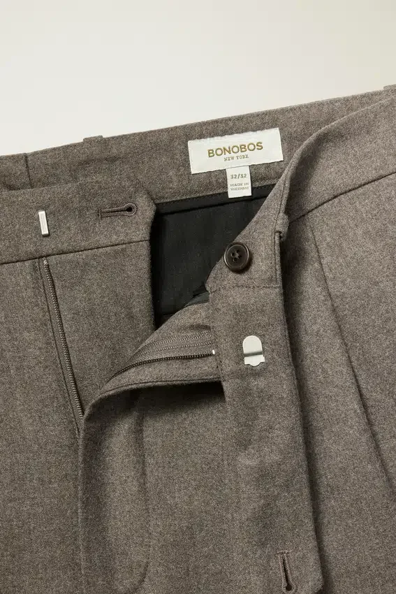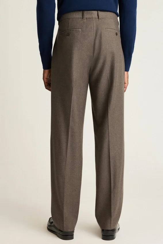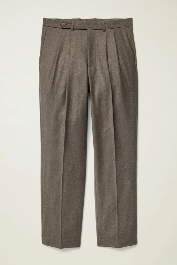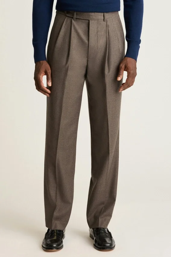 Premium Italian Wool Flannel with Elegant Pleats That Offer Midcentury Sophistication.