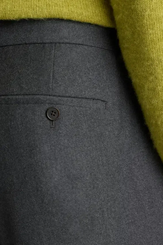 Premium Italian Wool Flannel with Elegant Pleats That Offer Midcentury Sophistication.