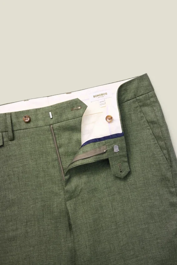 Fabric from Guabello | Hook and Bar Closure | Button-Through Back Pockets | Front Leg Lining