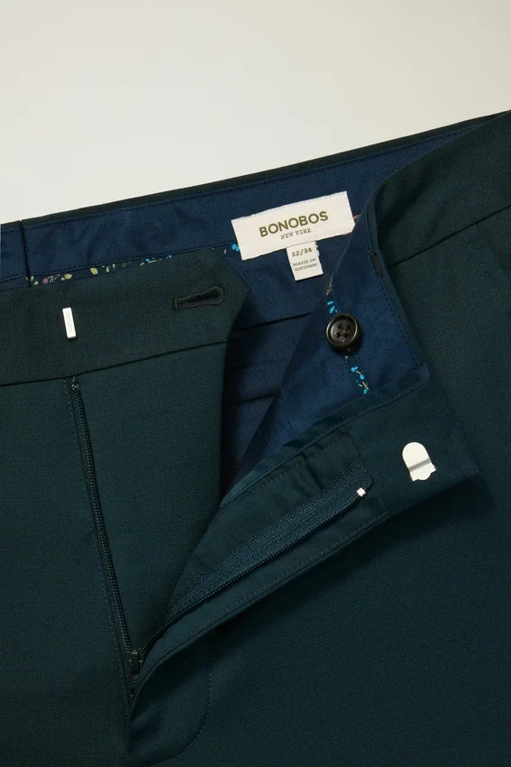 Hook and Bar Closure | Button-Through Back Pockets | Front Leg Lining