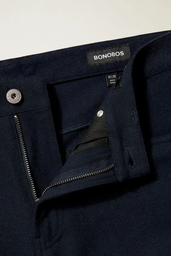 Refined Japanese Brushed Fabric | Lightweight Herringbone Pocketing | Bonobos Logo Shank Closure and Rivets