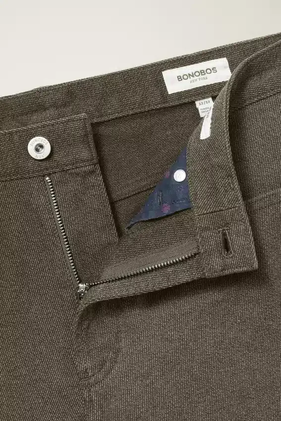 A Midweight 5-Pocket in Yarn-Dyed Stretch Cotton with a Subtle, Heathered Texture.