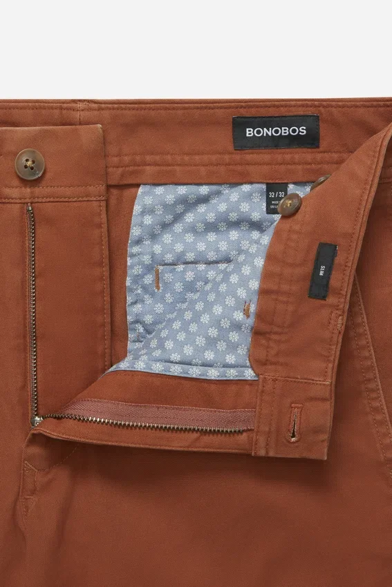 Floral Printed Pocketing | Bonobos Logo Button at Center Front and Back Pocket | Broken-In Canvas with a Washed Handfeel | Double Needle Topstitching All Over