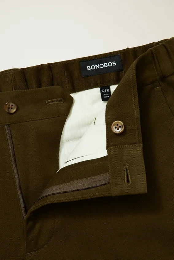 Straight Fit | Button Closure at Front | Fly Zipper | Slant Pockets | Elastic at Back Waistband for Comfort