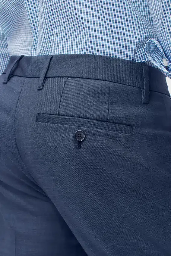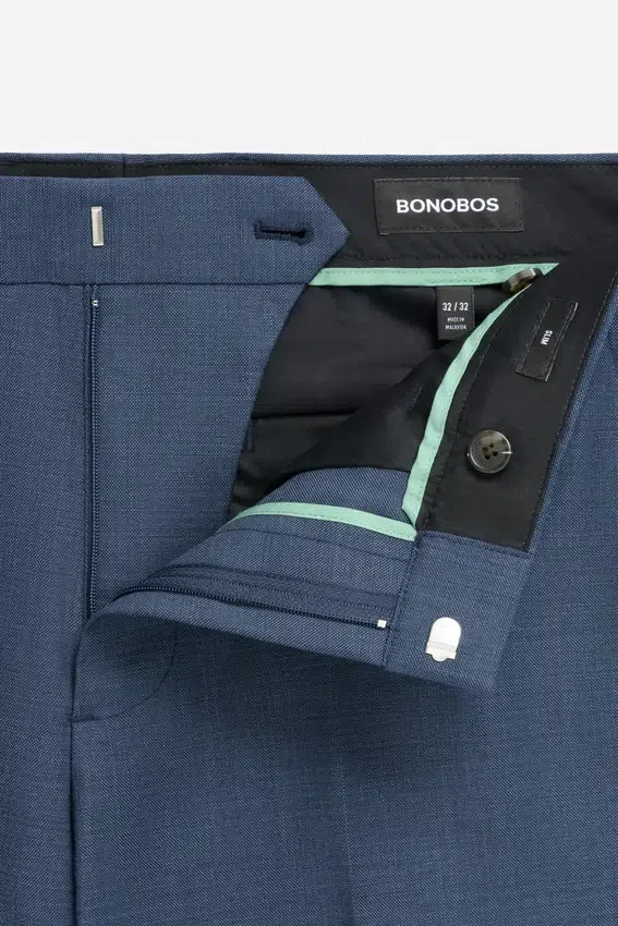 Stretch Wool Milled in Italy at Marzotto Mill | All Colors Are a Subtle Sharkskin Texture | Slant Pockets, Hook and Bar Closure, Buttons at Back Pockets | Icons Embroidered on Interior Waistband “Hang Dry”, “2 Way Stretch”, “Machine Washable” and “Wool Blend” “