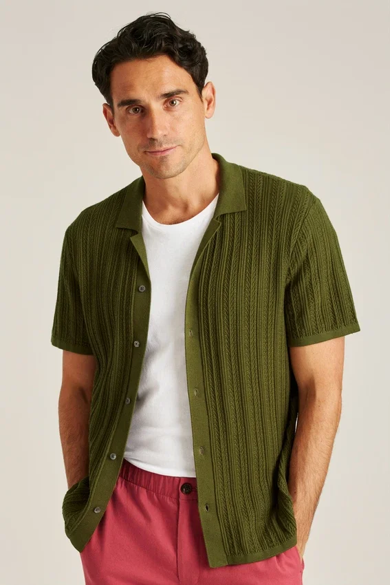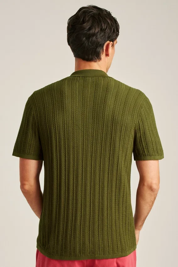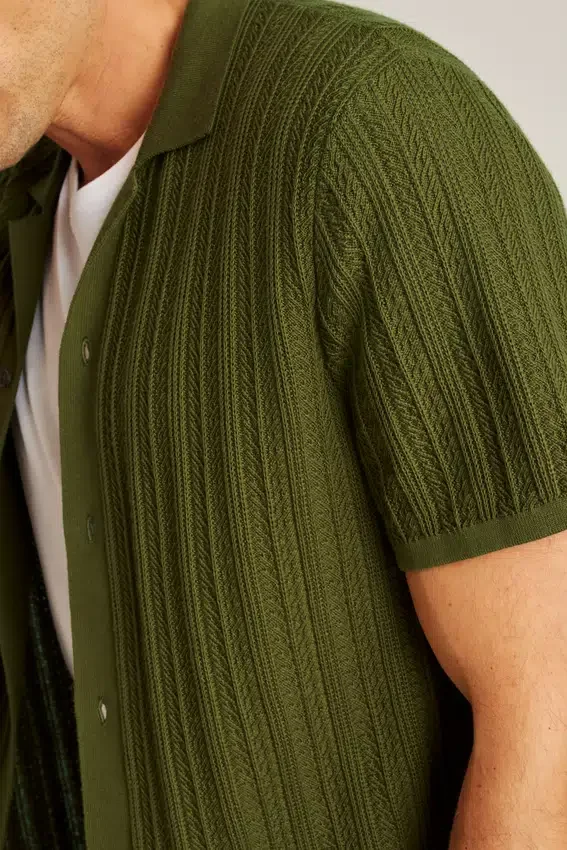 Soft and Breathable Cotton Yarn with Allover Texture Stitch for Casually Sophisticated Vibes | Full-Length Placket
