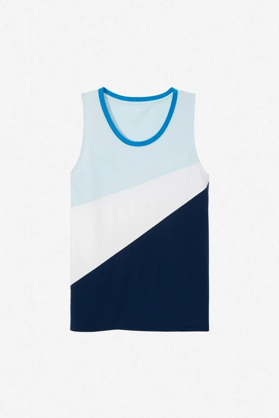Casual Tank Top Constructed from 100% Cotton. Diagonal Trims of Light Blue, Navy and White with a Blue Collar. Available in a Variety of Fit Options. Free Shipping!