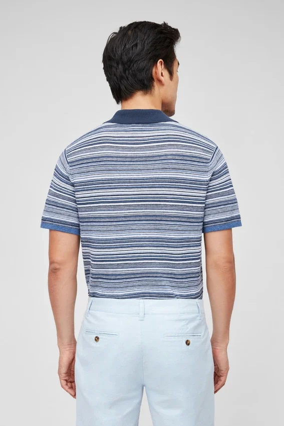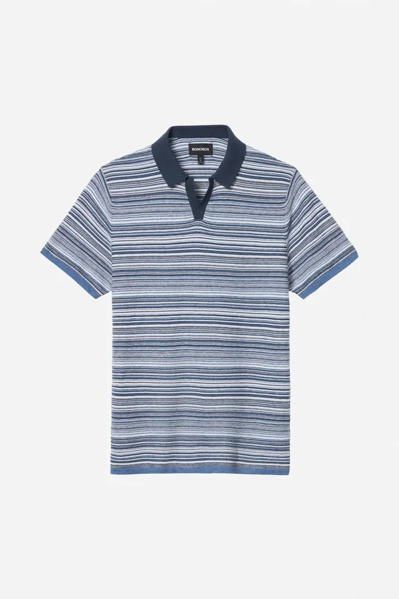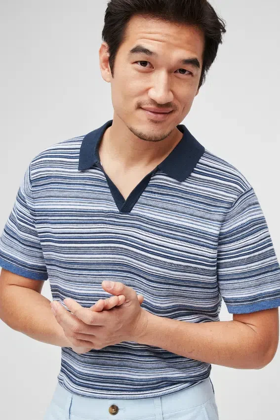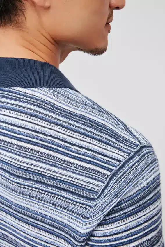 Soft Yarn in Textured Stripe Stitch | Solid Collar, Cuffs, and Hem | Buttonless Collar for a Retro Look