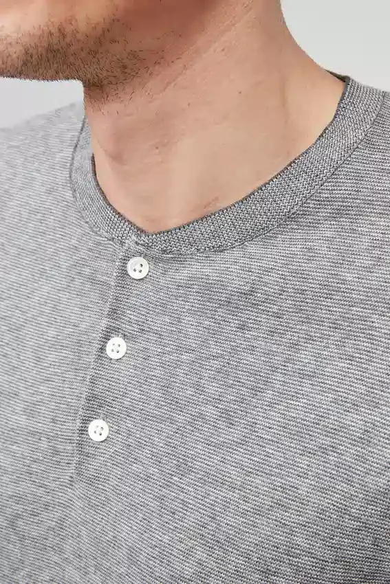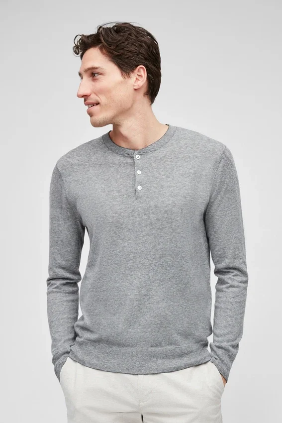 An Airy Cotton Linen Brings a Breezy Feel to Your Classic Henley. Ribbed Collar, Cuffs and Bottom Hem. Available in a Variety of Fits and Sizes.