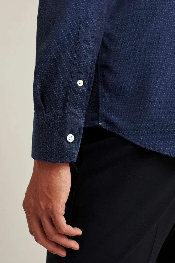 Modified Point Collar | Double-Button Barrel Cuffs | French Placket | “Stay Handsome” Collar Stays
