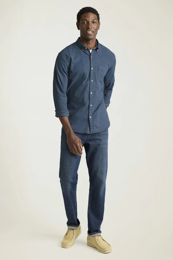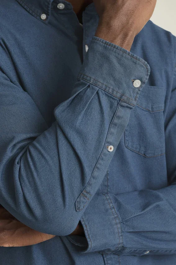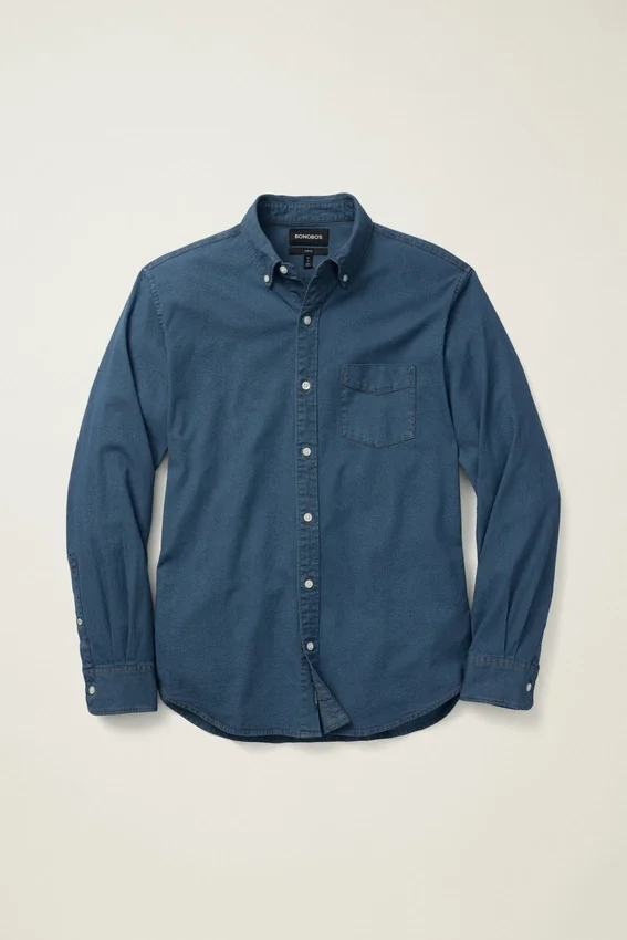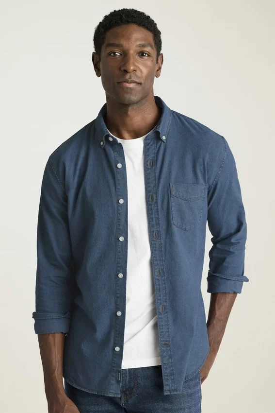Button-Down Collar | Chest Pocket | Stretch Denim Fabric