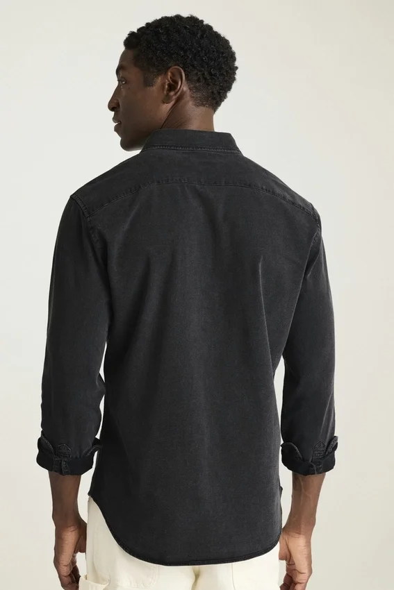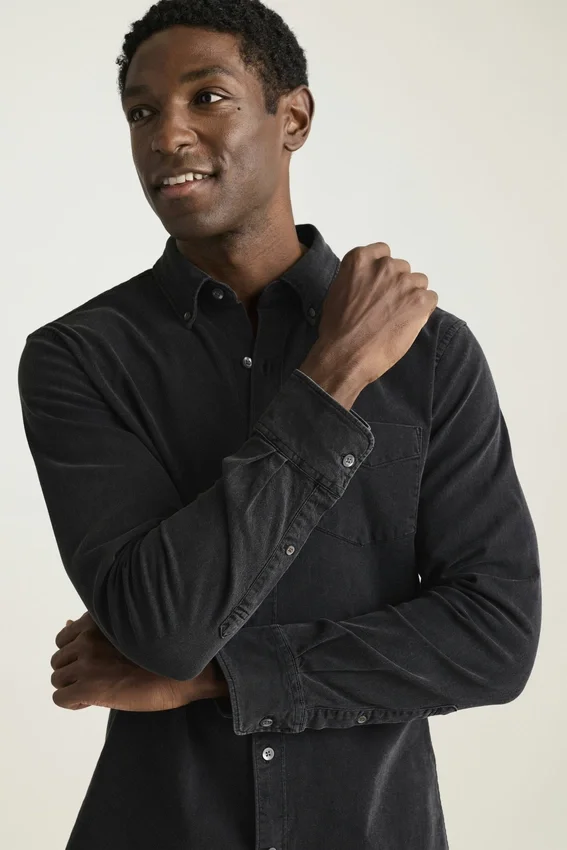 Button-Down Collar | Chest Pocket | Stretch Denim Fabric