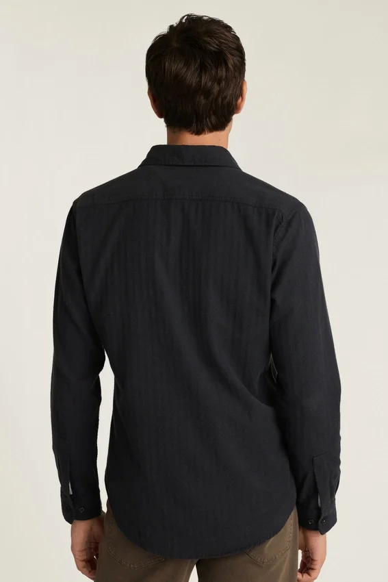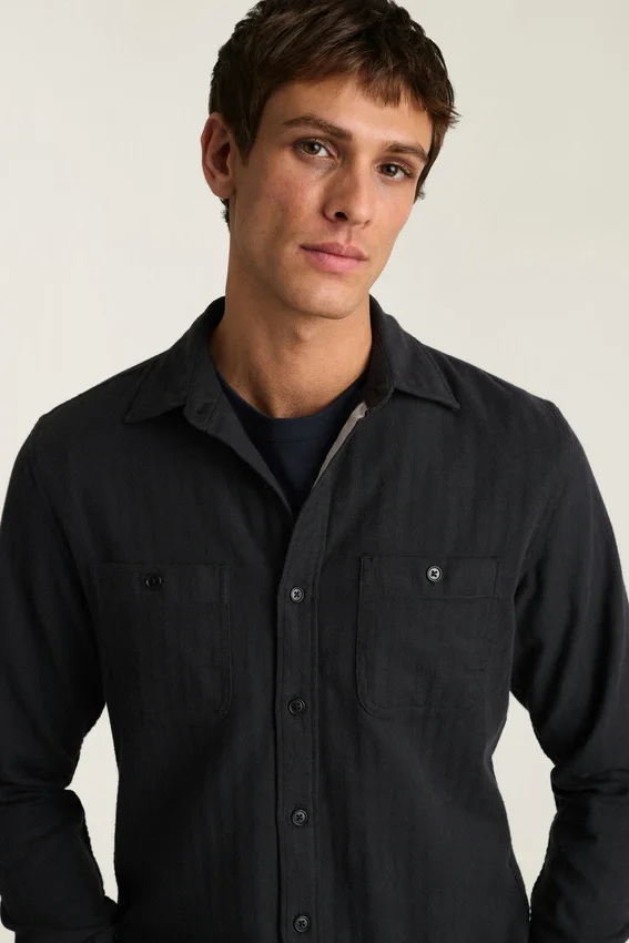 Soft Touch Stretch Flannel Fabric | Two Chest Pockets | Heather Grey Fabric Placed at the Interior Back Yoke and Interior Button Placket