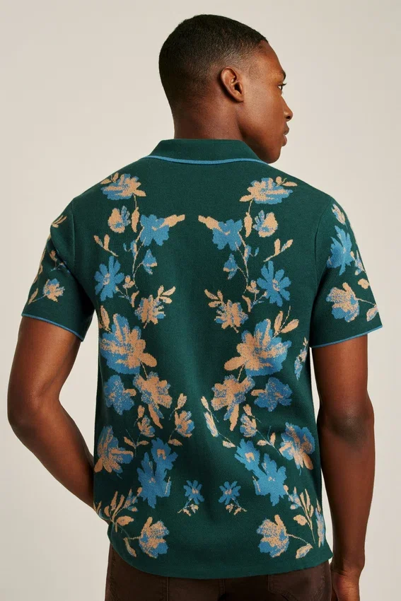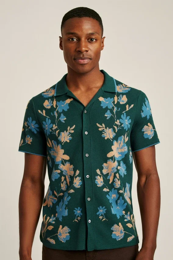 Soft and Breathable Cotton Yarn with Engineered Floral Pattern for Fashion-Forward Vibes | Full Placket
