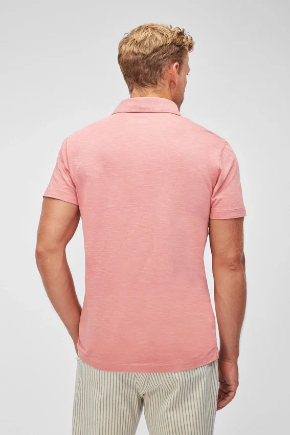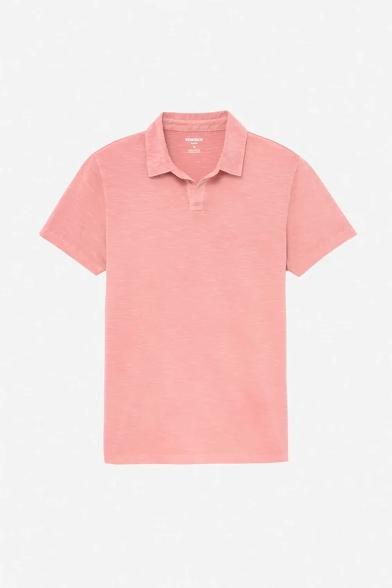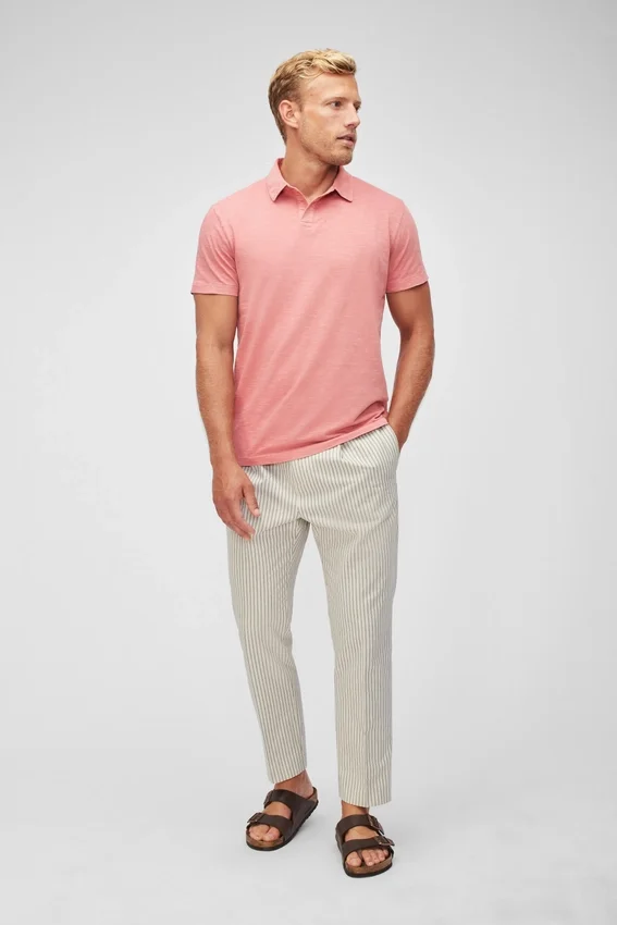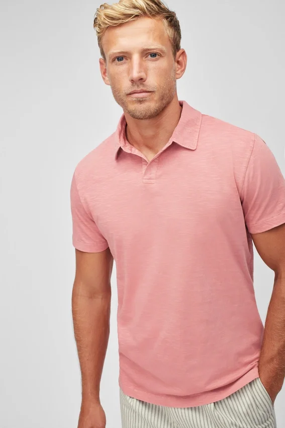 Lightweight and Soft Slub Jersey Fabric with Faded Garment-Dyed Colors for a Casual Look and Feel | Retro, Button-Less Johnny Collar Style