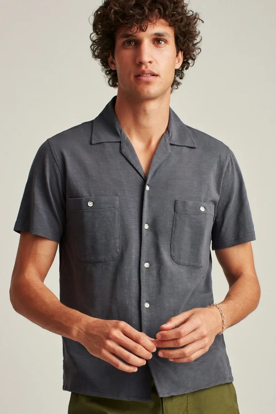 Camp Collar | Double Chest Pockets with Button Closure | French Placket | Side Vent