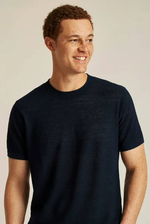 Lightweight Yarn | T-Shirt Body | Texture Stitch | Jersey Roll and Ribbed Details at Collar and Cuffs