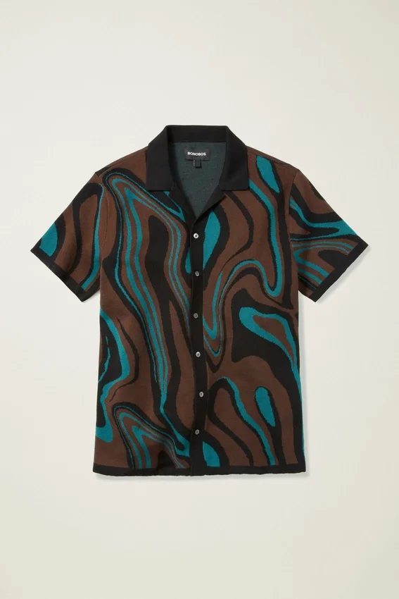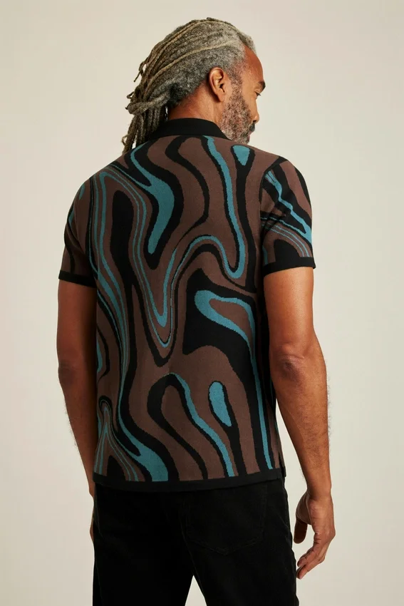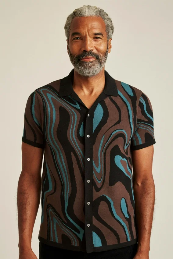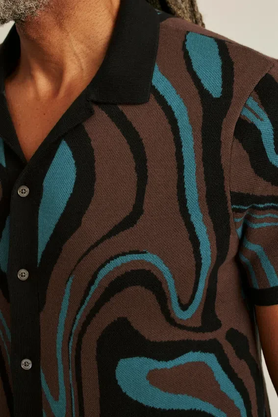 Soft and Breathable Cotton Yarn with Custom In-House Marbled Pattern for Fashion-Forward Vibes | Full Placket