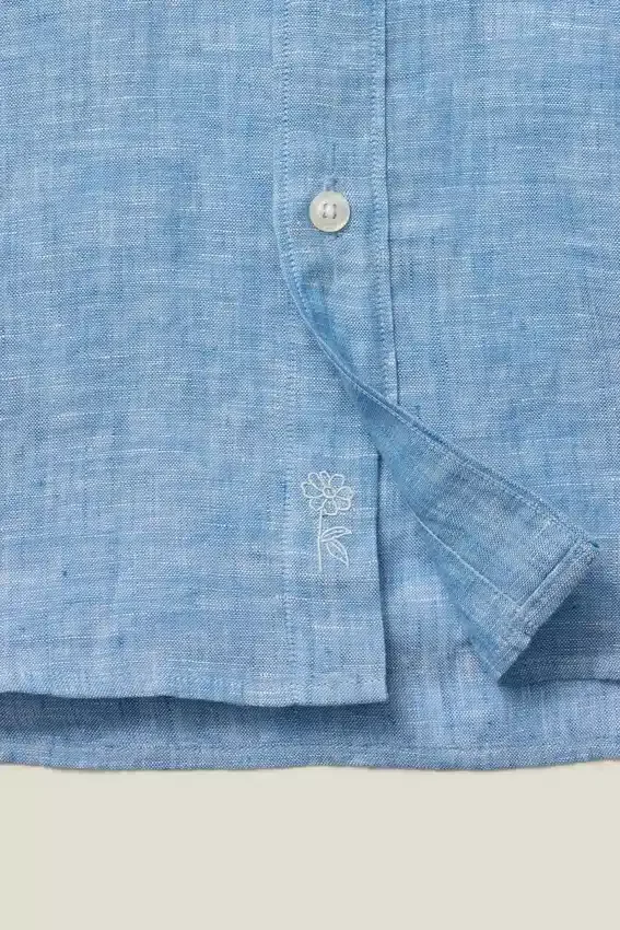 Chest Pocket | Subtly Curved Hem | Bonobos Floral Embroidery at Under Placket