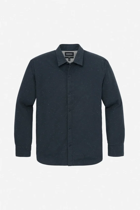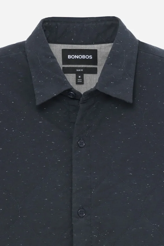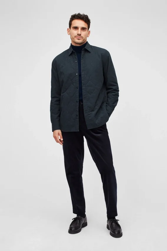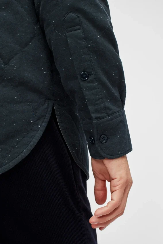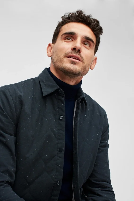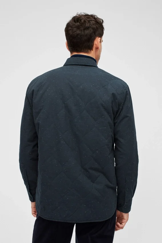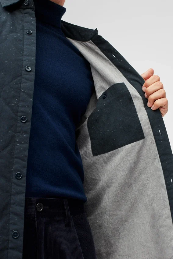 Lightweight Jacket | Quilted Exterior Donegal Fabric | Soft Contrast Grey Interior | Point Collar | Interior Chest Pocket with a Button Closure Same Fabric as Exterior