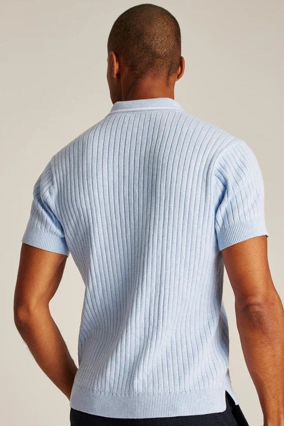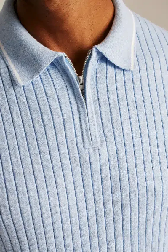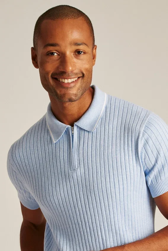 Cooling Cotton Blend | Allover Wide Ribs, Tipping at Collar, and Zipper Closure at Neck for Sporty Retro Vibes
